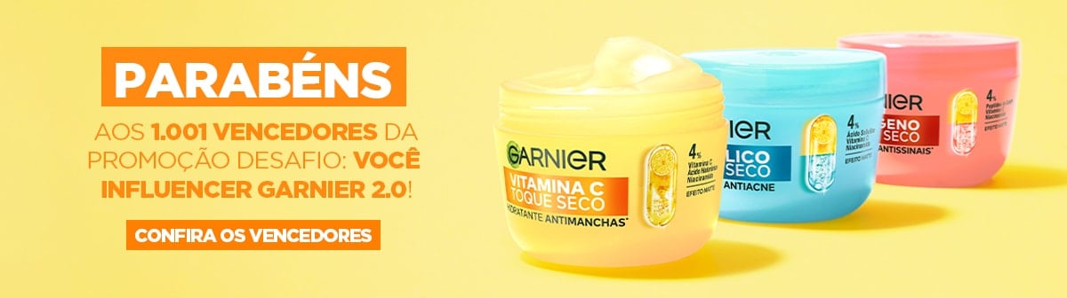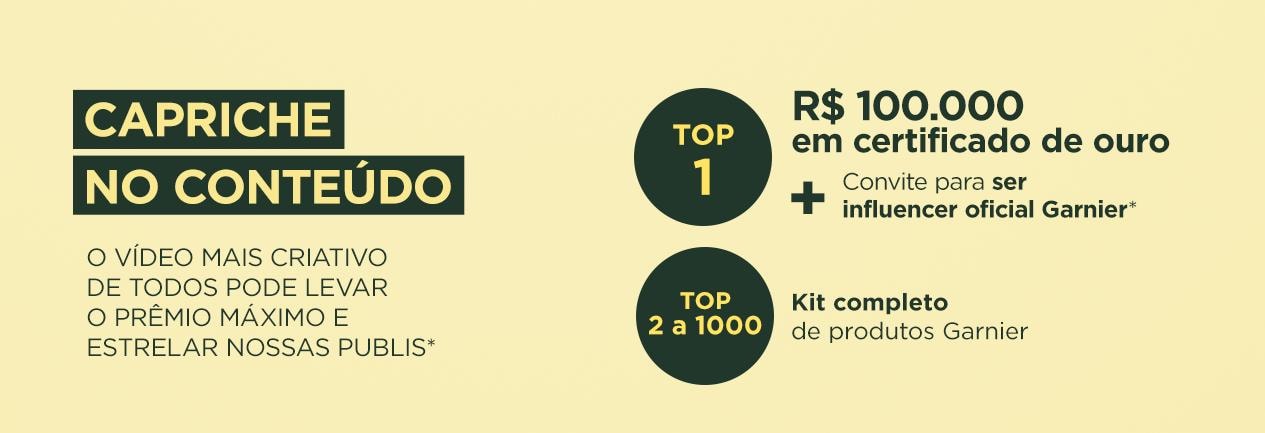O uso da hashtag e a desativação da opção "Conta Privada" são essenciais para a identificação das participantes, sendo itens obrigatórios para a participação. O post precisa ficar ativo por 30 dias, ou seja, não pode ser apagado. O participante permite que o vídeo seja utilizado pela marca para republicações nas redes sociais de Garnier e de influenciadores contratados pela marca para comunicação da campanha. A campanha fica ativa até durarem os estoques do produto, limitados em 5 mil unidades. Participação válida de 30.09.2025 a 31.10.2025. Consulte regulamento completo em https://scpc.seae.fazenda.gov.br/scpc/promocao_consulta_publica.jsf. Certificado de Autorização SPA/ME 03.044671/2025.